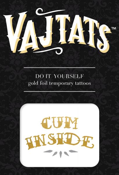 Body Art Ink Gold Foil Temporary Tattoo Vaj-tat Do It Yourself. Transform yourself into an irresistible seductress. Vaj-tats are the perfect accessory to add a touch of glitz and glamour to your most intimate areas. Vaj-tats have been specifically developed for the temporary application on human skin, are easy to apply and non-toxic. Each applied piece lasts for up to 5 days, even through showering and swimming. Includes 3 identical sheets. 3 individual pieces. Cum Inside