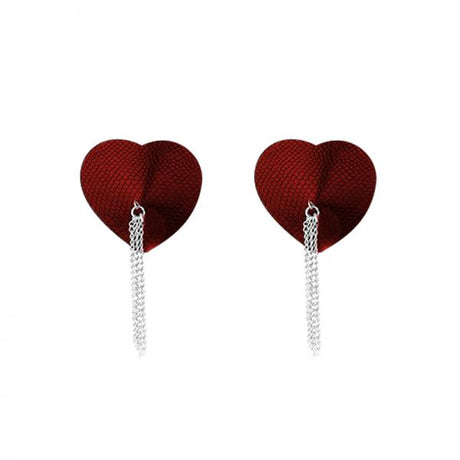 Nipplicious Dominatrix Leather Collar & Pasties With Chain Red