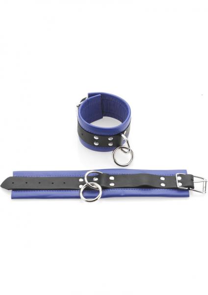Faux Leather Collar, Wrist, Ankle Restraints & Leash Bondage Kit Gold