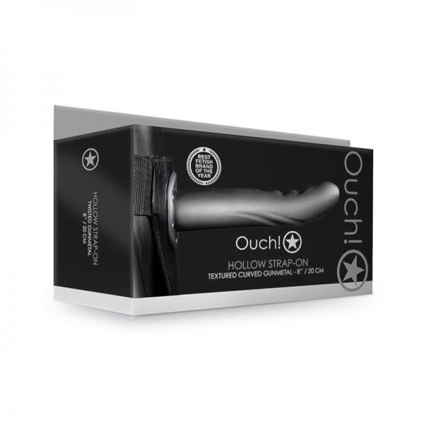 Ouch! Textured Curved Hollow Strap On 8 In. Gunmetal Gray