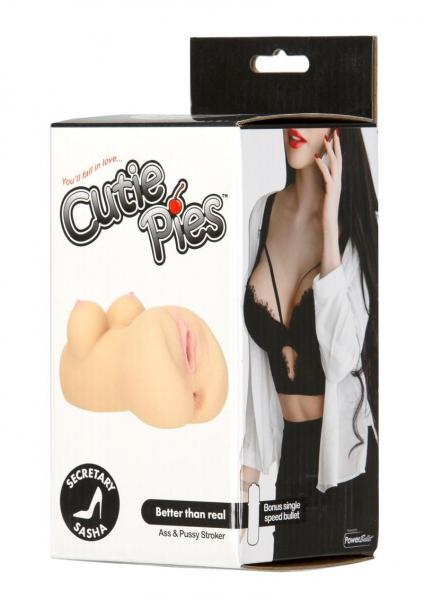 Sasha the Secretary has cleared her schedule for some much-needed one-on-one time. Are you ready to show her who`s boss? Her tight vaginal and anal openings are 6.5 inches deep, uniquely textured and open-ended for easy cleaning. An added hole perfectly fits the included removeable bullet for over-the-top vibrations with every stroke. Made from soft and supple TPE material that is 100% body-safe and provides the upmost lifelike experience, once this secretary is done with you, you`ll be wondering whether or not she`s the real deal! Sasha`s compact size makes her easy to bring with you anywhere, for stroking around the clock! You`ll be thankful for staying after-hours once this CutiePie is done with you! To conveniently dry your product the right way, check out the CutiePies Drystick!