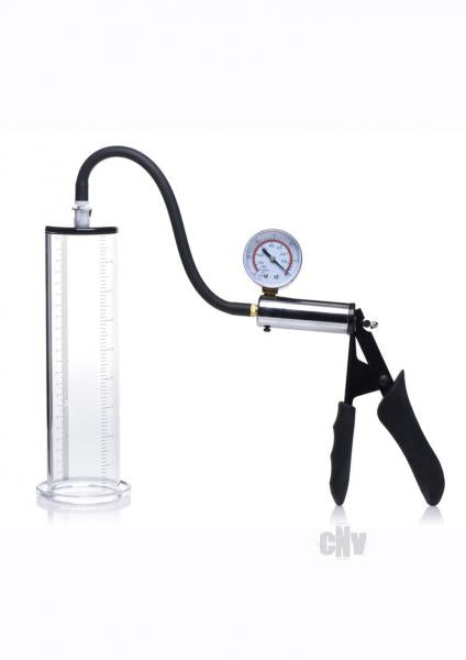 Pump things up! This Penis Pump Kit features a transparent 9 inch cylinder with measurement markings so you can track your progress with each pump. The wide lip base ensures a tight seal, while the flexible hose and quick release valve makes it easy to maneuver and release the pump when you`re ready to play.The ergonomic hand pump comes included with a large pressure gauge so you can find the amount of pressure works with your package best. This Pump Kit is perfect for those who want a more sensitive and long lasting erection - utilize your favorite cock ring to maintain your new pumped up shaft!Measurements: Overall length 9 inches, diameter opening 2.25 inches, hose length 10.25 inchesMaterials: Metal, acrylic, phthalate-free siliconeColor: TransparentPenis Pump Kit with 2.25 Cylinder Specs:Enhance Your Erection: Everything you need to pump your package is included - increase blood flow to your shaft to improve your erection duration and sensitivityObserve Your Growth: The transparent cylinder features measurement marks so you can track your progress, while the wide base at the opening of the cylinder ensures a secure sealErgonomic Hand Pump with Pressure Gauge: The easy grip hand pump makes it easy to squeeze air out of the chamber; keep an eye on the pressure gauge to find your preferred level of suctionQuick and Easy Release Valve: Disconnect the hose with the quick release valve; the simple design makes it easy to detach and re-attach the hose while you play