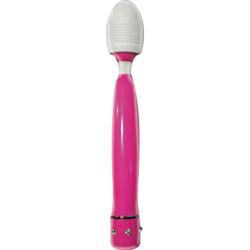 Super powerful motor promotes mega intense orgasms! Wand massager requires 2 AA batteries, not included. PVC soft touch surface. Twist dial variable speed. Faux diamond encrusted handle. Swivel head function.