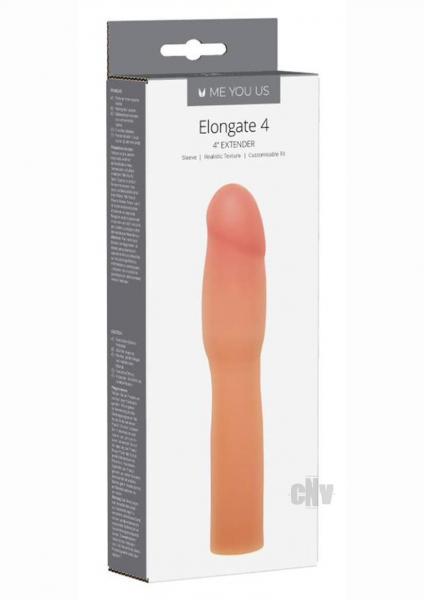 Intensify penetration with the Me You Us Elongate 4 penis extender that will instantly add 4 inches of length to your member. Made of body-safe, easy-to-clean TPE that is velvety smooth, this sex enhancer is perfect for bringing fantasies to life through role-playing as well as satisfying a partner`s desire for deeper penetration. The material is supple yet firm with a texture that mimics the sensation of skin. Its firm, realistic tip delivers a satisfying filling girth and deep-reaching length.