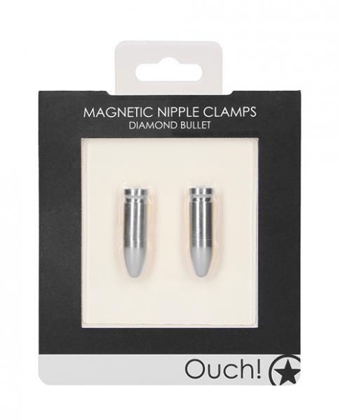 Shots Ouch Diamond Bullet Magnetic Nipple Clamps Silver