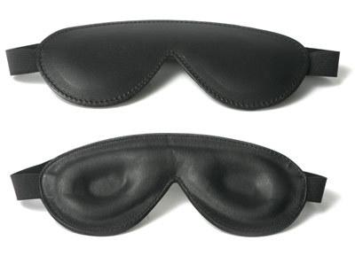 This blindfold is made of black leather and padded in the inside for a comfortable fit and more effectively obscured vision. It is held in place by a black elastic band. It is a perfectly dependable, long lasting blind fold. Warning: This is a NEW item that is not in retail packaging, usually a plain box, wrapped in plastic or a poly bag.