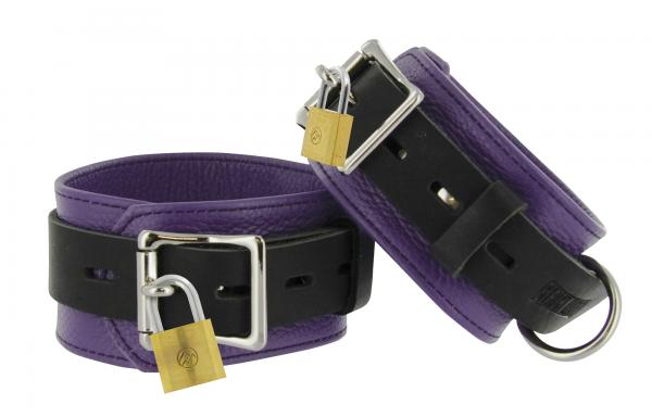 Strict Leather Purple Black Deluxe Locking Ankle Cuffs