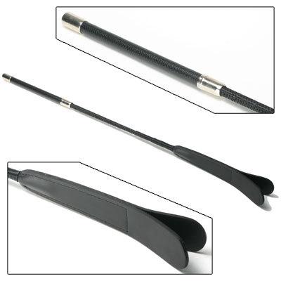 This premium leather riding crop is a fantastic impact tool. The handle is wrapped in a layer of leather with a metal tip. The shaft is rigid, but has a little flex, so on impact the split leather tip provides a nice bite. It measures 18 inches long. Warning: This is a NEW item that is not in retail packaging, usually a plain box, wrapped in plastic or a poly bag.