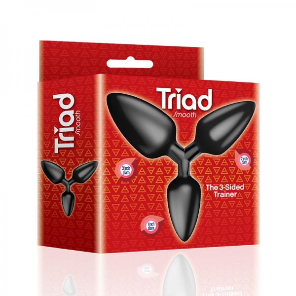 It?s the smoothest three-way anal trainer anywhere?and we we say smooth, we mean smooth as in ?cool? too. Each seamless plug seamlessly moves to a larger size, and your partner can ?play? with just a turn of the wrist. And all Triads are made from body-safe TPR, which is easy to clean and nonporous, so they stay perfect always. Why go to all the trouble of buying one plug after another when you can do your training all in one place? That?s why everyone?s ?tri-ing? Triad, only from Icon Brands!