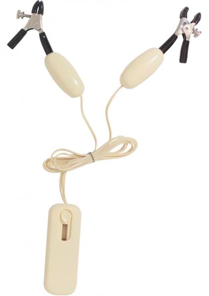 Vibrating Jumper Cable Nipple Clamps Ivory