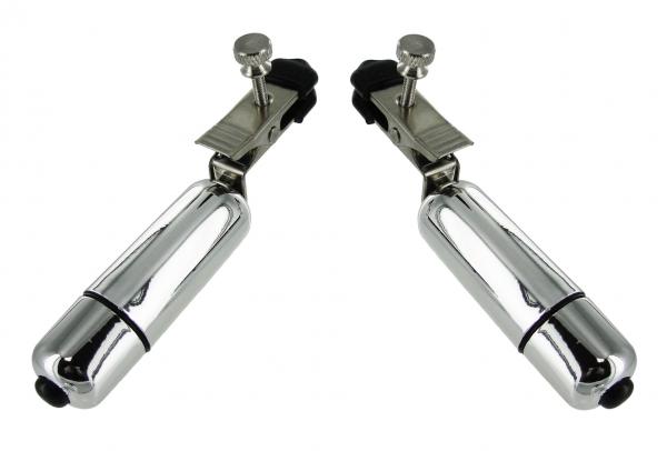 Wireless Vibrating Nipple Toy. Finally, a powerful one touch vibrating wireless sex toy. These silver babies will shake practically anything you attach the clamps to. Easy to use, just unscrew the egg to remove the battery seal then apply the cover. Now just press the little black button. The rubber coated clamps are adjustable to achieve the desired pressure. Can also be a lot of fun attached to the scrotum, penis, labia and other very sensitive areas of the body. Measures 4 inches long by 1 inch wide. Batteries Included.